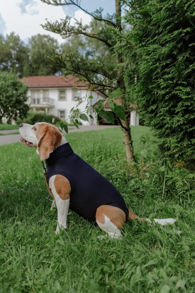 ფარავს ტანს, მკერდს და კისერს, მინიმუმამდე ამცირებს ბეწვის ცვენას, ამცირებს ინფექციის რისკს და ხელს უშლის ნაკერების ლოკვას.